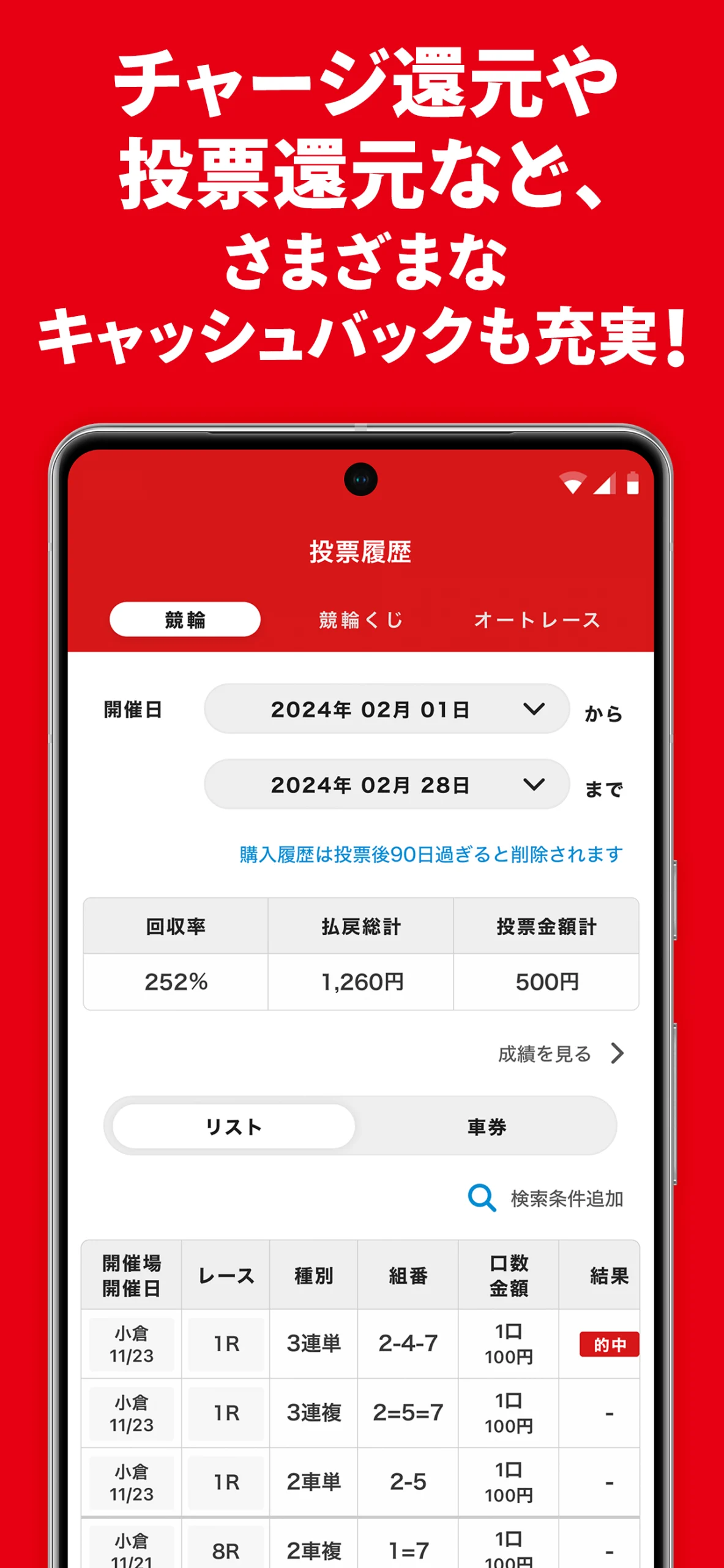 チャリロトは実際に投票する資金」を入金して楽しむ仕組みです。最低投票額は100円からなので、無理なく始められます。もちろん、ライブ映像やオッズのチェックは無料で利用可能。投票をしなくても情報収集ツールとして活用できます。
