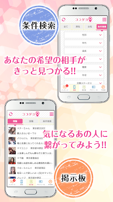 「ココダヨ」は、匿名性を活かして気軽に利用できるマッチングアプリです。全国どこからでも利用でき、掲示板や検索機能を駆使することで、恋人探しや友達作りがスムーズに行えます。口コミからもわかるように、アクティブな利用者が多く、出会いのチャンスが豊富にあるのも強み。