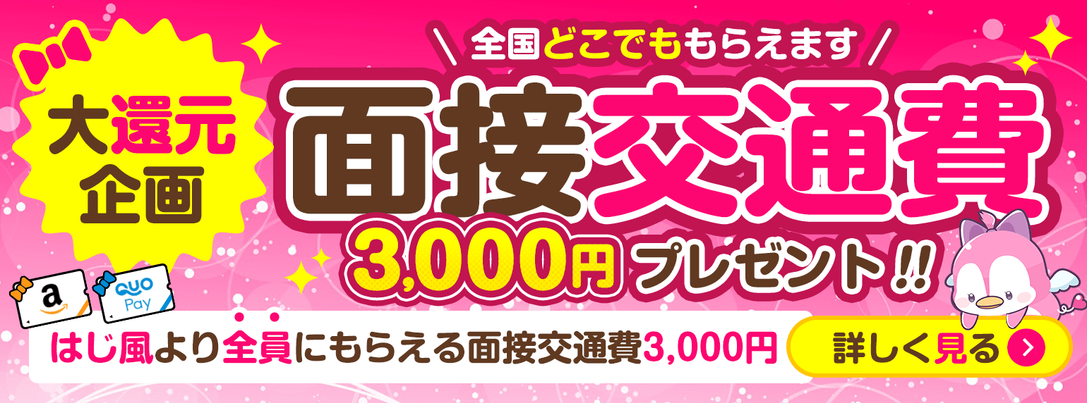 はじめての風俗アルバイトでは、求人に応募して、採用されたすべての女性に3,000円分のQUOカードが贈呈されます。