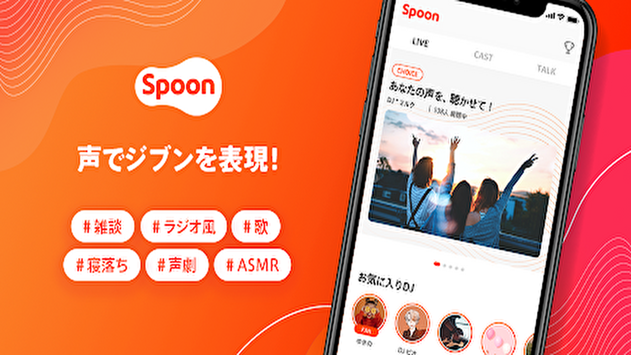 Spoon(スプーン)は、音声配信に特化した人気アプリで、配信者とリスナーの距離が近いのが特徴です。落ち着いた雰囲気のコミュニティが多く、長く続けやすい環境が整っています。