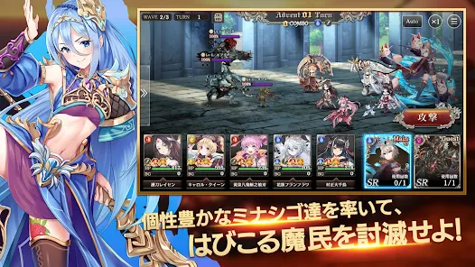 柔軟な編成システムで多様な戦術が可能です。爽快感をもたらす戦神召喚システム、多様なユニークなキャラクターが織り成す豊かなストーリーを特徴とする『ミナシゴノシゴトR』は、堅実なストーリーと、刺激的なイベントの絶妙なバランスを提供しています。