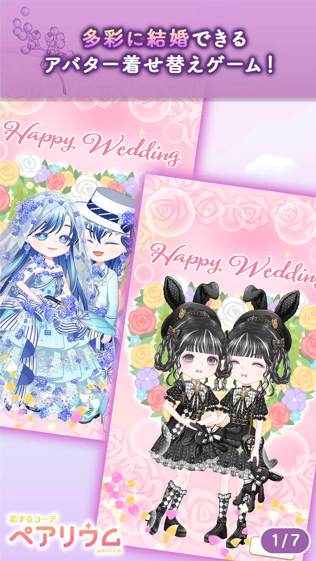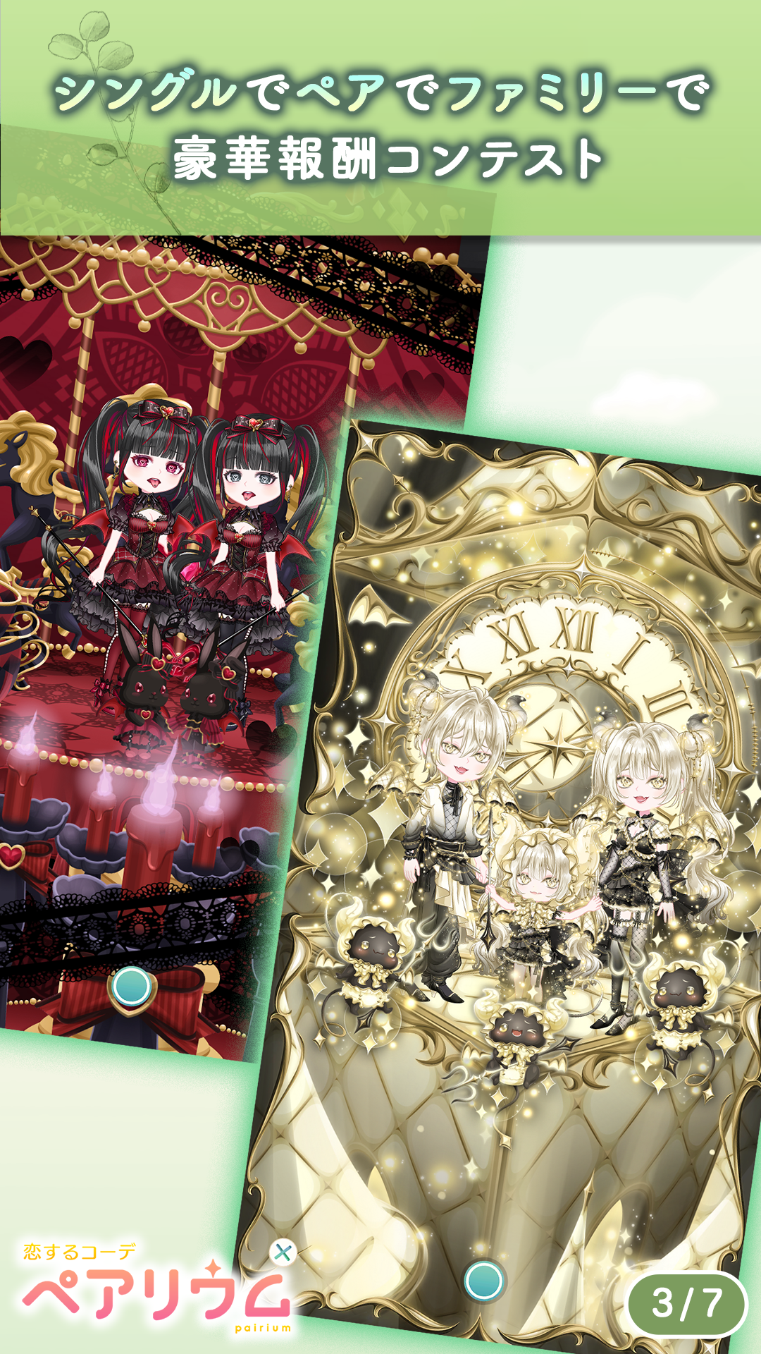 「ペアリウム」は、恋愛シミュレーション・着せ替え・3マッチパズルという3つの要素を組み合わせた人気スマホゲームアプリです。プレイヤーは自分の分身となるアバターを自由にカスタマイズし、髪型・衣装・メイク・アクセサリーなどをコーディネートしながら、物語を進めていきます。