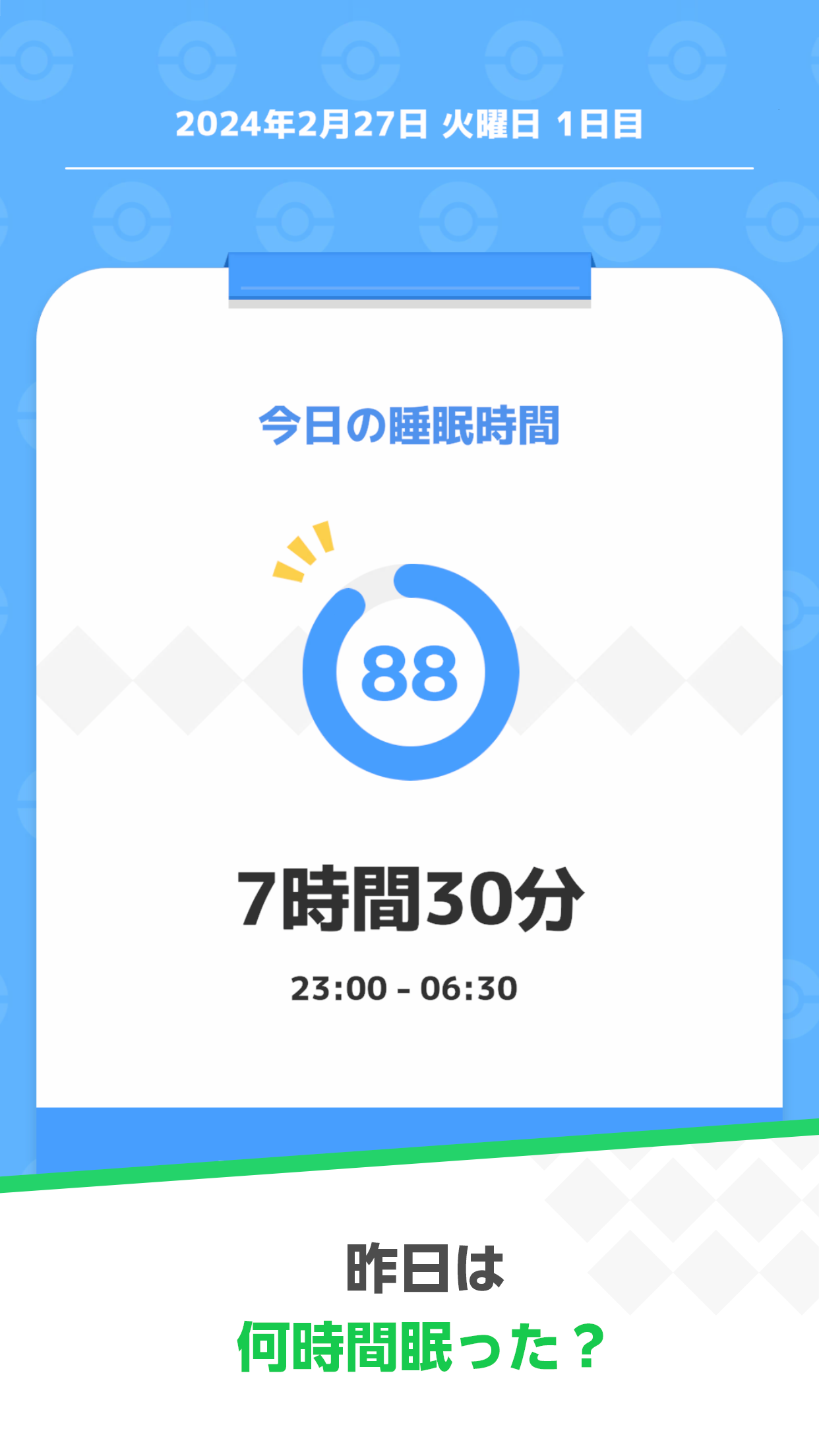 スコアは、成人の平均睡眠時間8.5時間を基準に計算されており、8時間半に近いほどハイスコアになります。