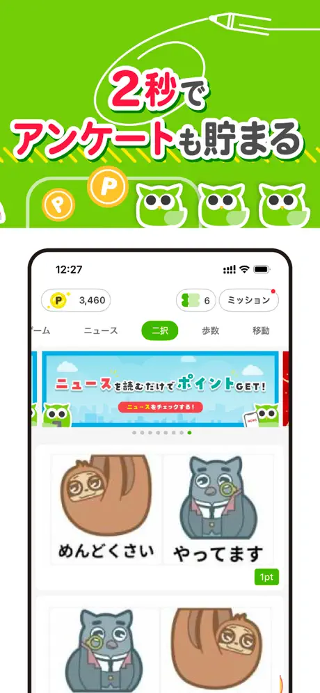 キャラクターたちと、会話をしながらアンケートを楽しむことができるので、楽しくポイントを貯めることができます。